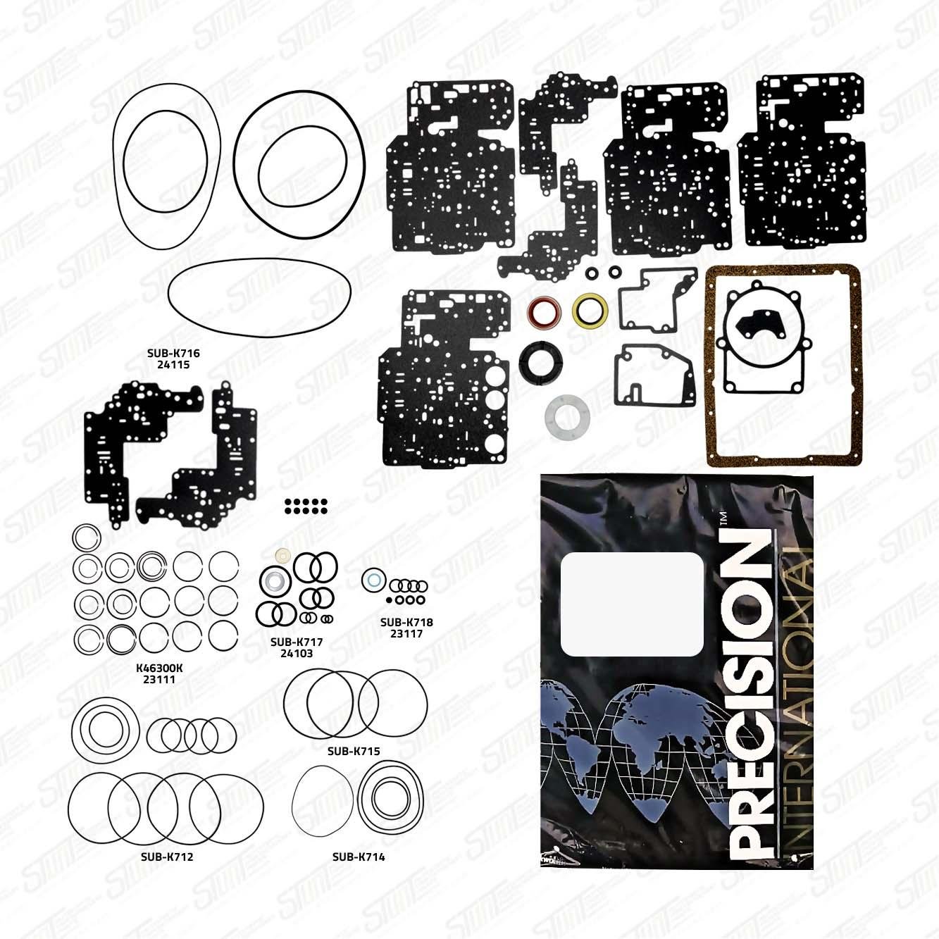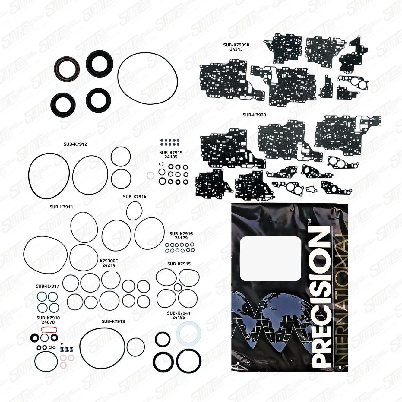 JUEGO DE EMPAQUES (12 TEFLON) PRECISION C/PLACA C/V VULCAN. Y SELLO BOMBA VULCANIZ 4L60E/4L65E/4L70E 07-13